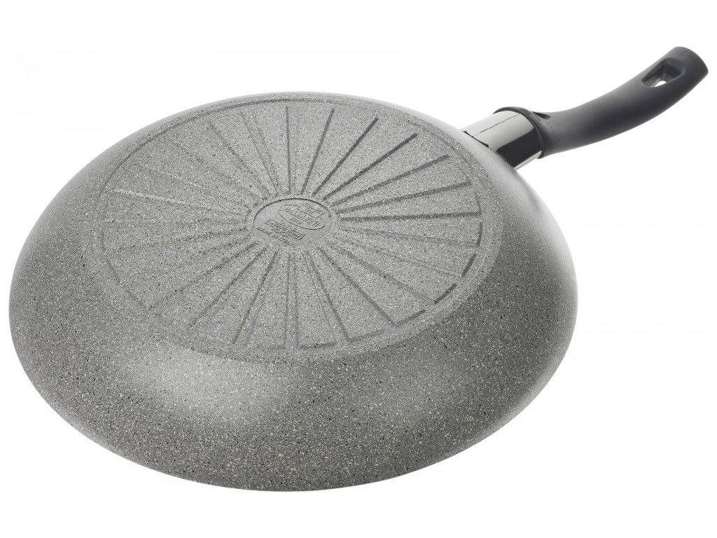 Ballarini panvica s priemerom 28 cm od talianskeho výrobcu Ballarini z kolekcie Ferrara sa stane nenahraditeľnou súčasťou Vašej kuchyne. Panvica so žulovým dekorom je vyrobená z hliníku, ktorý zabezpečí výbornú vodivosť tepla. Charakteristická je svojím nepriľnavým povrchom a je vhodná na všetky typy sporákov vrátane indukcie, keďže má dvojité dno pozostávajúce z oceľovej a hliníkovej vrstvy. Nepriľnavý granitový povrch panvice je zložený z piatich vrstiev, ktorých súčasťou sú keramické častice odolné voči vysokým teplotám. Kvalitný tvrdý povrch odolá aj kovovému kuchynskému náradiu. Ergonomicky tvarovanä rukoväť je tepelne izolovaná, takže nehrozí nebezpečenstvo popálenia. Panvica je vybavená thermobodom, ktorý Vás svojim sfarbením upozorní na správne rozohriatie.