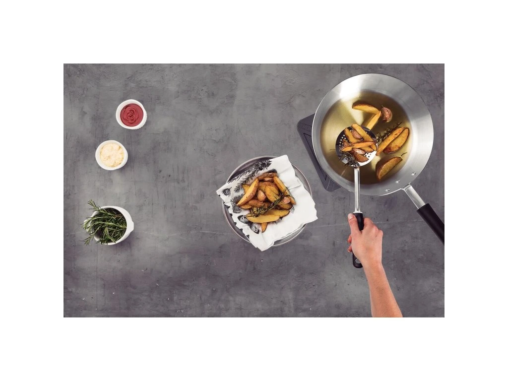 Kuchynská penovačka od brazílskeho výrobcu Tramontina sa stane Vašim ideálnym pomocníkom napríklad pri varení nedeľnej polievky a vyberaní mastnoty. Penovačka je vyrobená z vysoko kvalitnej nehrdzavejúcej ocele a ergonomická rukoväť z polypropylénu. Je vhodná do umývačky riadu.