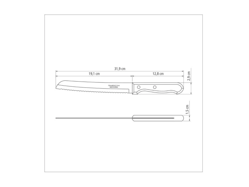 Nôž na pečivo z kolekcie Dynamic z dielne brazílskeho výrobcu Tramontina je jedným z výnimočných výrobkov z prírodného dreva. Čepeľ noža je vyrobená z nehrdzavejúcej ocele, ktorá je tepelne upravovaná a vďaka tomu je rezná hrana dlhodobo ostrá. Rukoväť noža je vyrobená z prírodného dreva a je pripevnená hliníkovými nitmi. Táto séria dodáva stolovaniu rustikálny vzhľad a jej produkty sú veľmi príjemné na dotyk. Neumývať v umývačke riadu.