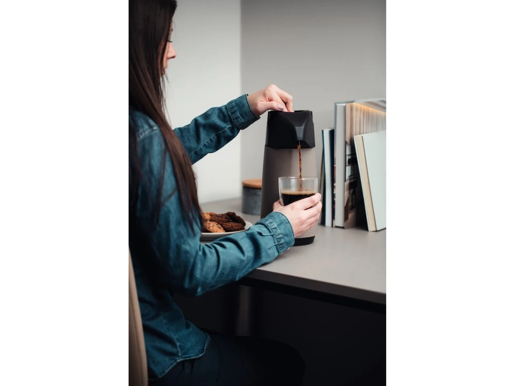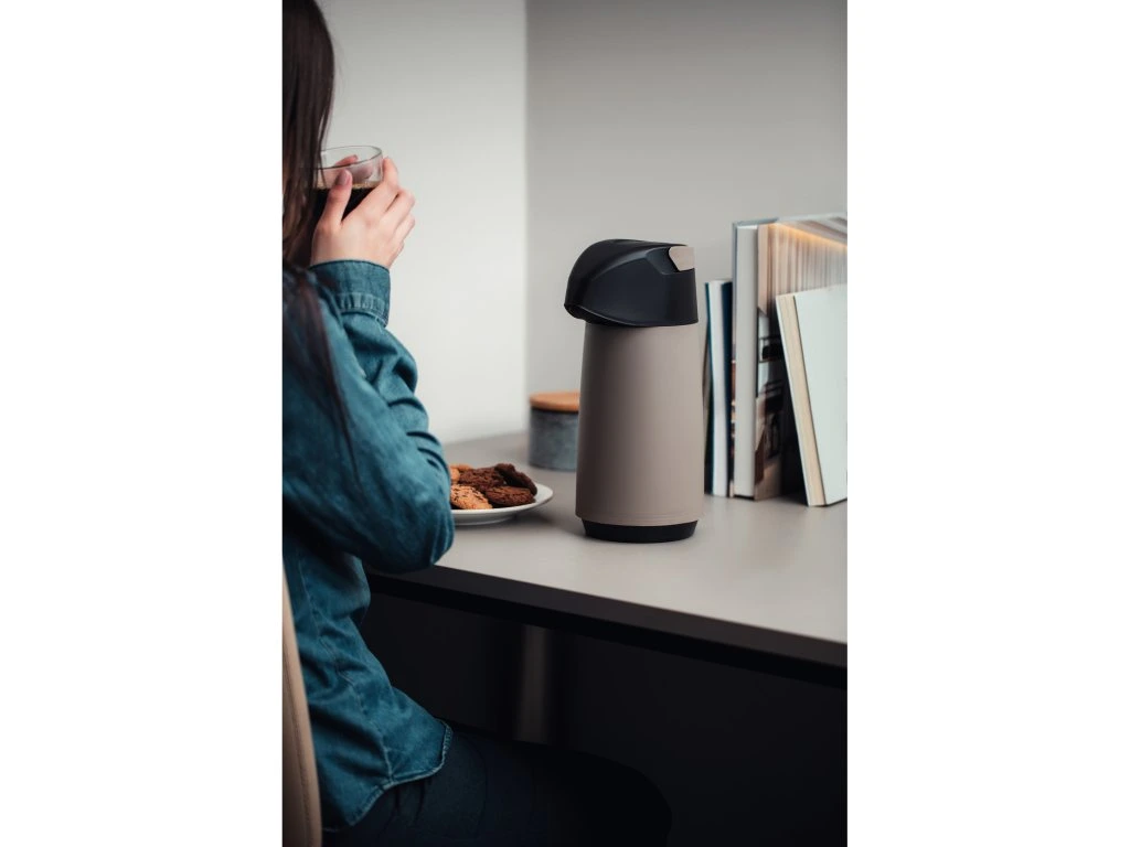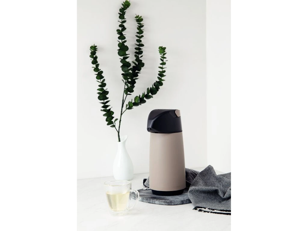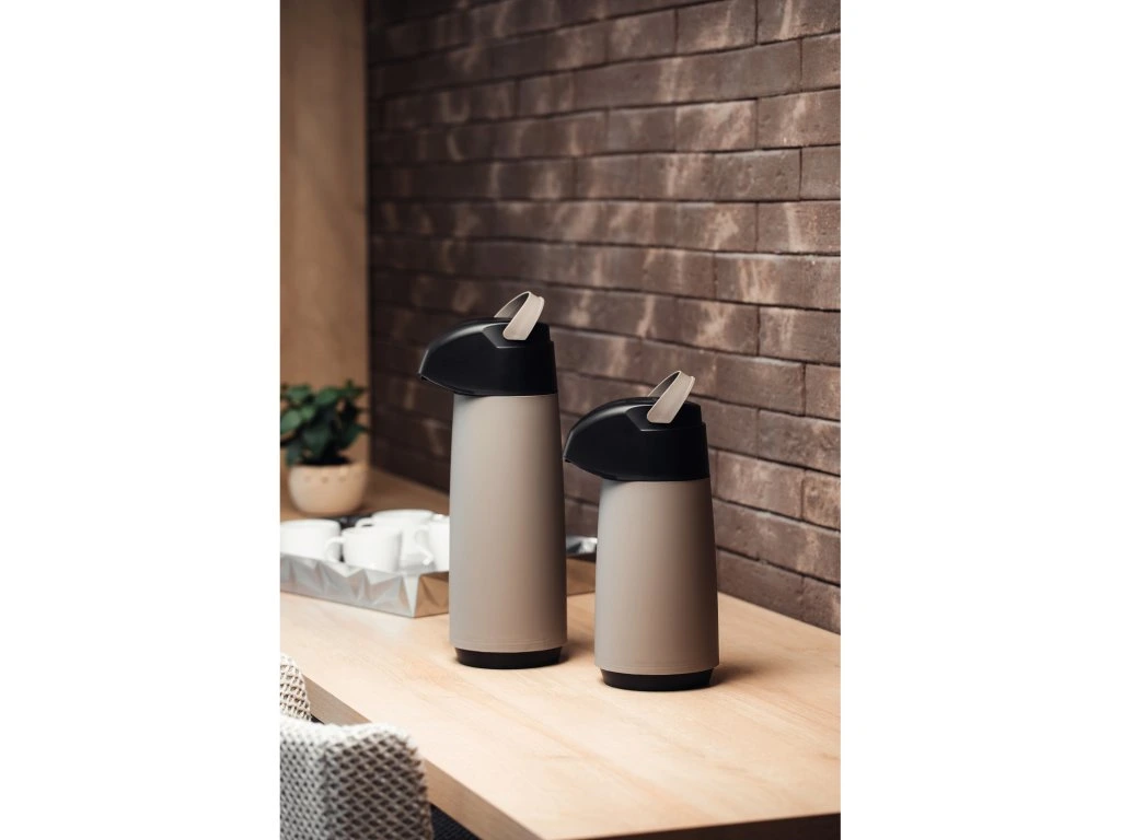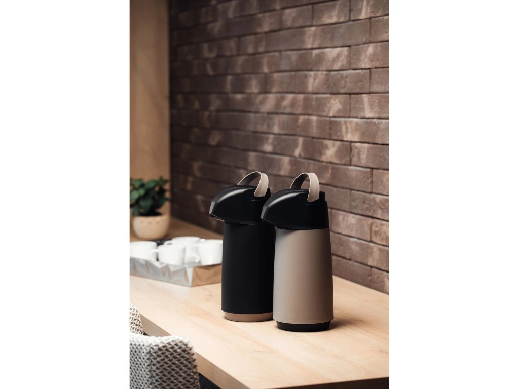 Termoska s pumpou z kolekcie Exata z dielne brazílskej značky Tramontina má objem 1 liter. Vyrobená je z kvalitného polypropylénu a sklenenej vnútornej vložky. Vyznačuje sa ľahkou manipuláciou a nadčasovým dizajnom. Výsuvná rukoväť je praktická pre uchopenie a prenášanie termosky. Odkvapkávací systém zabraňuje nežiaducemu odkvapkávaniu po podávaní. Tento produkt ani jeho komponenty neobsahujú BPA, preto je bezpečný pre celú rodinu. Je hygienická a ľahko sa čistí. Okrem teplých nápojov je vhodná aj pre studené nápoje, kedy udrží ich chlad až 12 hodín.